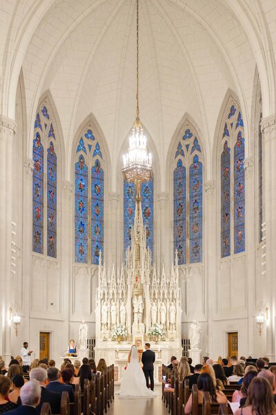 When there is no first look, the majority of the pictures have to be taken after the ceremony. Family pictures are generally done as soon as the ceremony ends because it’s the easiest time to round everyone up. Next up is full wedding party, and then bride and groom portraits. This generally runs into cocktail hour.