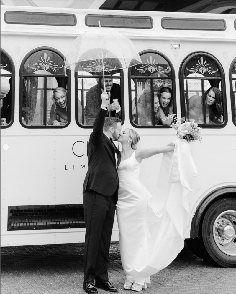 If you're not working with a planner, it might also be a good idea to check in with your entire vendor team to make sure they're aware of the weather. Hair and makeup may need to be tweaked to withstand humidity and if your wedding is outdoors, DJs and bands may need to take extra precaution to protect their gear. A quality rental team can also minimize the amount of mud at outdoor events.